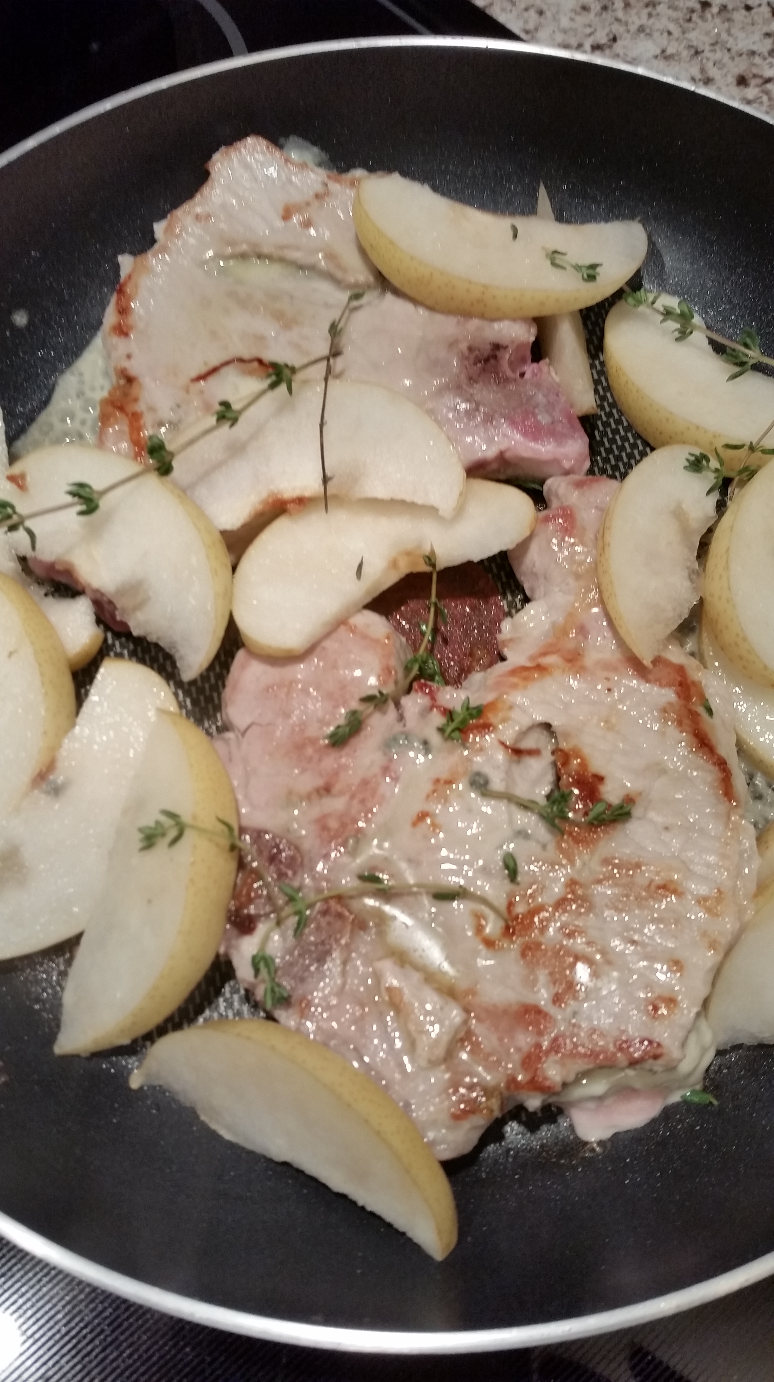 Sunday Kitchen Experiments: Blue cheese stuffed pork chops with pear